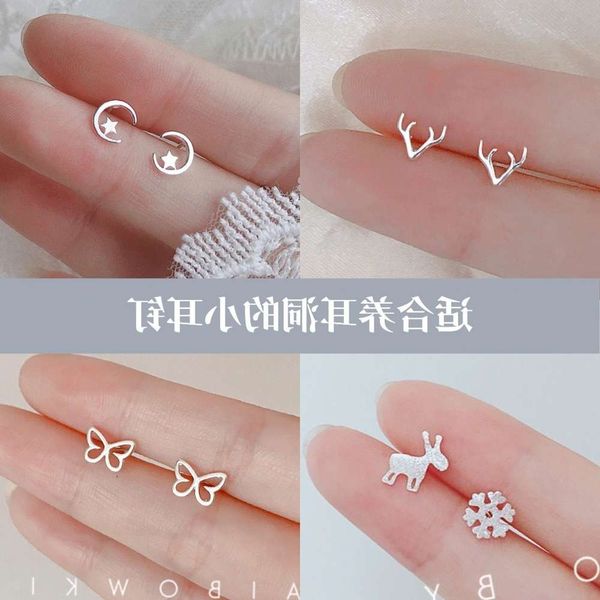 earrings korean allergy 925 ear bone geometric zoysia plain silver butterfly versatile small earrings female, Golden