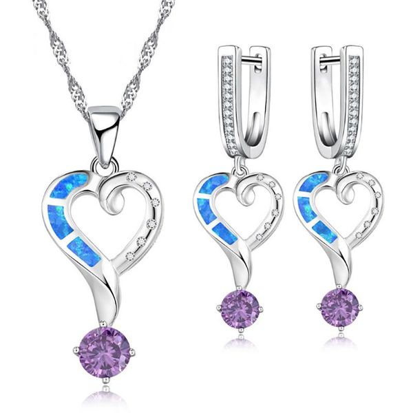 earrings & necklace 2021 exquisite heart jewelry set for women bridal wedding accessories fashion zircon crystal pendant, Silver