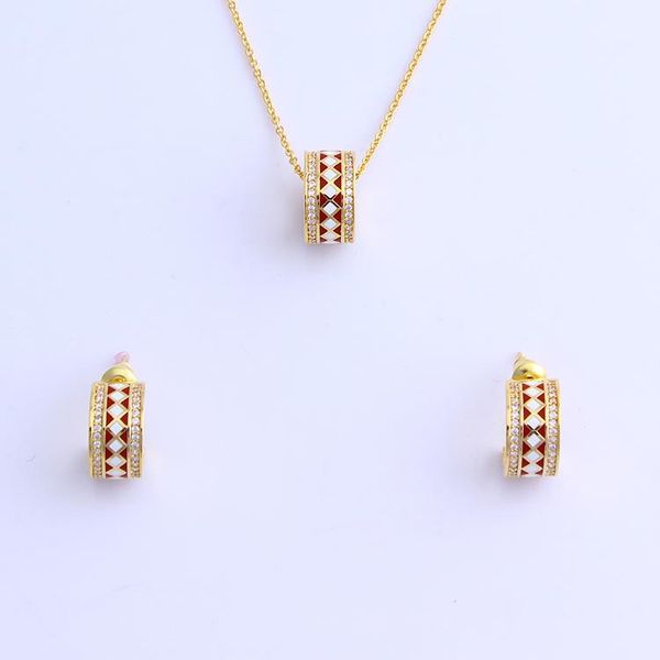 earrings & necklace brass enamel jewelry set women's and for party, Silver