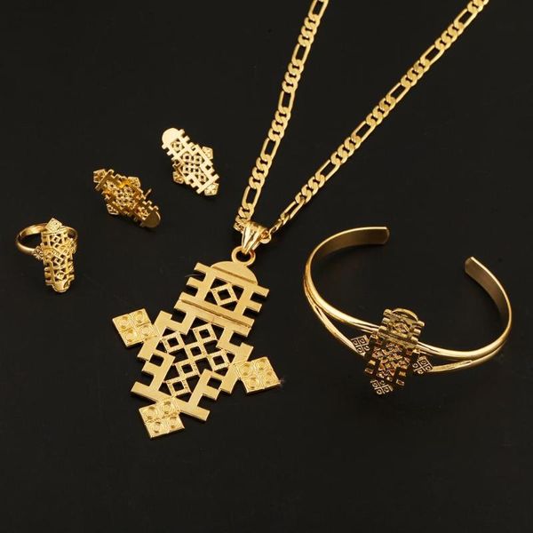 earrings & necklace ethiopian cross pendant jewelry set african gold color coptic crosses charm, Silver