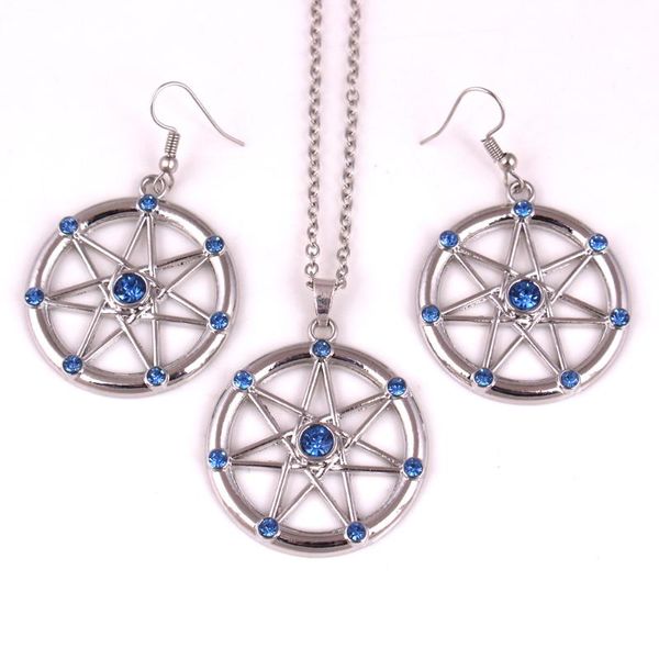 earrings & necklace faery star elven pendant silver | fae elf magick w/ amethysts amulet jewelrt set