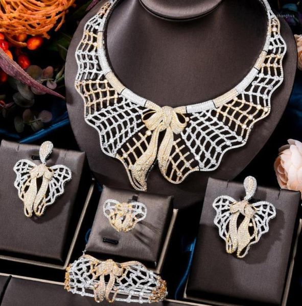 earrings necklace godki lovely bowknots 4pcs african bridal zirconia cz jewelry sets for women wedding dubai nigeria crystal par8442513, Silver
