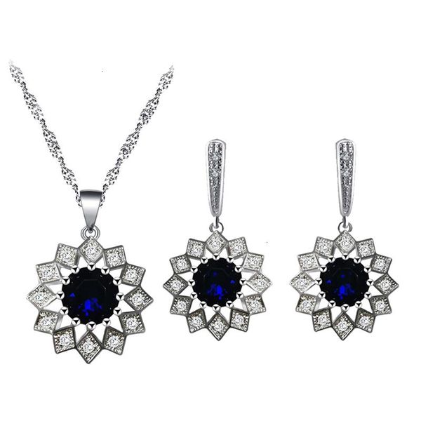 earrings & necklace lady flower design 925 silver blue zircon pendant jewelry set fashion halloween gift js829