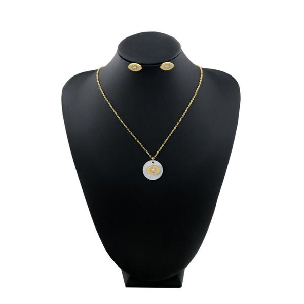 earrings & necklace minority personality design versatile collar chain female round brand eye earring set, Silver