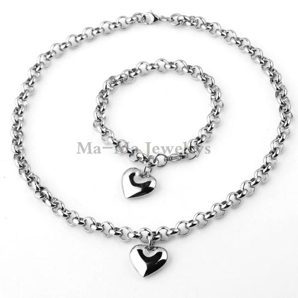 earrings & necklace soild heart pendant stainless steel women's jewelry set + bracelet, Silver