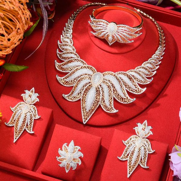 earrings & necklace soramoore 4pcs luxury african jewelry sets for women wedding party zircon crystal dubai bridal, Silver