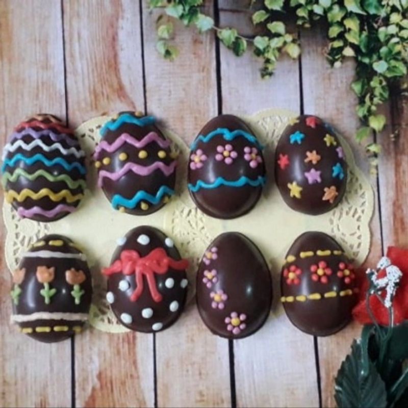Seukuran telur ayam negeri setengah lingkaran. Full coklat.