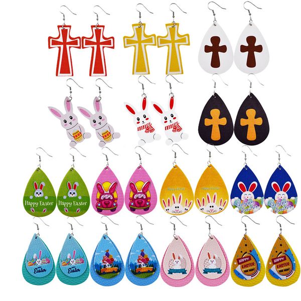 easter leather earrings rabbit flower easter egg printed dangle earrings gift faux pu earrings for women girls, Golden