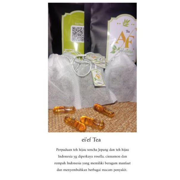 Memiliki beberapa kandungan seperti polifenol, fluoride, kaya Vitamin C & Beta-caroten. vitamin K, kalium, kalsium, natrium, flour, seng dan mangan. Tiap 1 pack ei'ef Tea mengandung 260-280 mg Vitamin C, Vitamin D, B1, dan B2. Kandungan Vitamin C-nya 3 kali lipat dari anggur hitam, 9 kali lipat dari jeruk sitrus, 10 kali lipat dari buah belimbing, dan 2.5 kali lipat dari buah biji. Selain itu mengandung Kalsium tinggi (486 mg/100 gr) dan Omega 3. Dan juga diperkaya Vitamin A, Iron, Potasium, dan Asam Esensial.