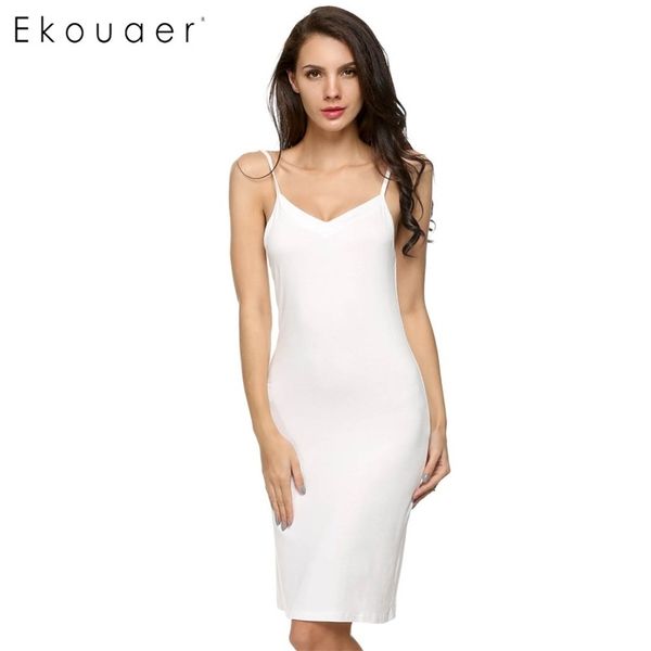 ekouaer summer nightgown lingerie sleepwear full slip underdress cotton long night gown nighties sleepshirts homewear y200425, Black;red