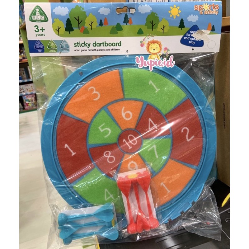 safe darts: blunt ends with hook and loop pads that stick to the fuzzy board