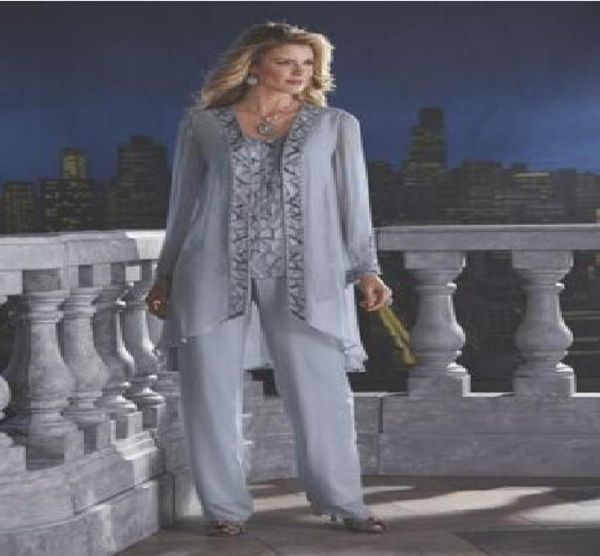 elegant 3 piece mother of the bride pant suit 2017 fashion chiffon beach wedding mother039s groom dress long sleeve beads mothe4833549, Black;red