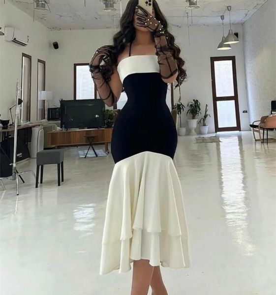 elegant long ruffled evening dresses sheath spaghetti straps prom gowns robes de soiree tea length party, Black;red