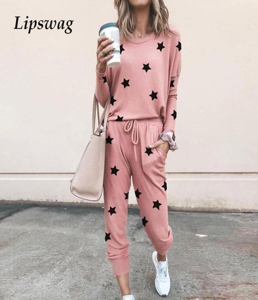 elegant star print ladies two piece suit women long sleeve sweatshirt and harem pants set femme outfits streetwear suits x09232458800, Gray