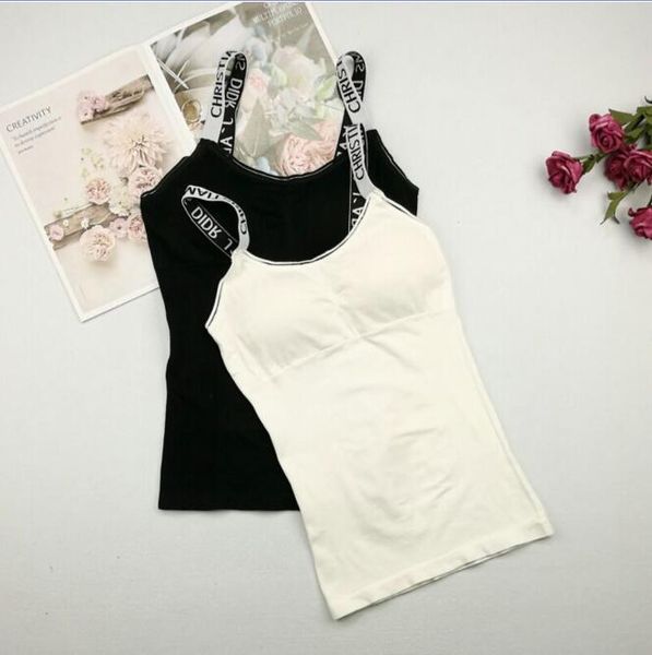 elegant women casual tank summer women's no steel ring integrated with chest pad vest bottoming shirt casual sleeveless top, White