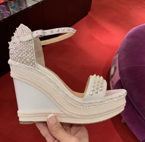 elgant brand design red bottom madmonica клин лодыжки ремень шипы гладиатор сандалии sexy ladies летние сандалии на высоком каблуке eu35-43, Black
