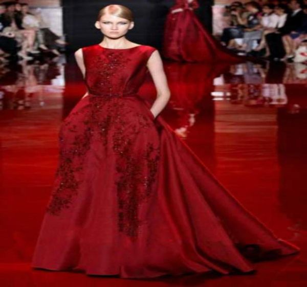 elie saab fashion new word shoulder evening dresses china toast wine red bride evening dress car carpet online4951823, Black;red