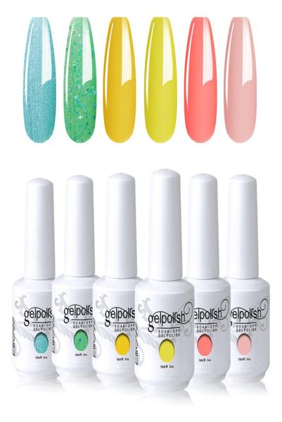 elite99 6 pieceslot uv gel nail polish set vernis semipermanent uv varnish gellak base coat needed 15ml nails gel polish5632222, Red;pink