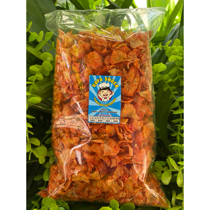 emping getes terbuat dari jagung pilihan, rasa pedas manis yang khas