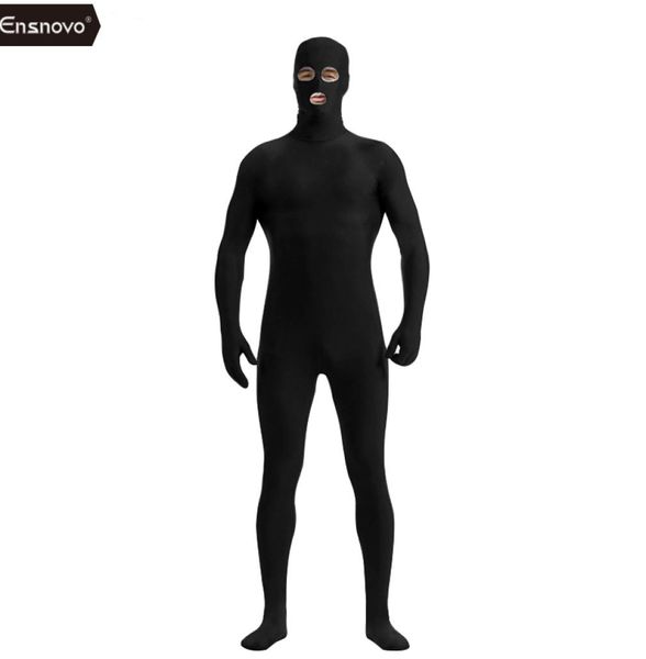 ensnovo men zentai suit spandex nylon lycra black full body second skin tight suit open eyes mouth cosplay costume black zentai8570930