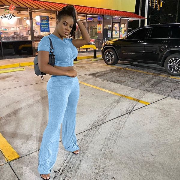 enyu xl-xxl повседневный 2020 summer sexy lady solid 2-piece set длинные с коротким рукавом v-образным вырезом плиссированные тройники flare, Gray