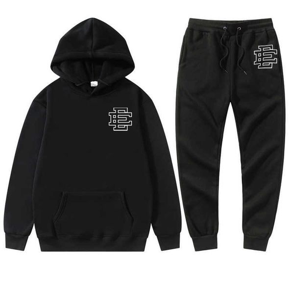 eric emanuel ee men's hoodie tracksuits fashion couple sportwear set printed hooded suits hoodie and pants 2pcs streetwear men women cl, Black