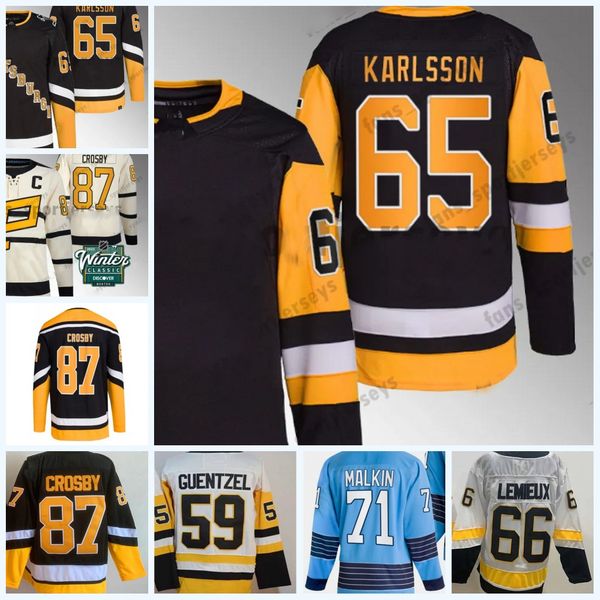 erik karlssonsidney crosby pittsburgh2023 winter classic jersey reverse retro 58 kris letang jake guentzel jeff carter bryan rust reilly smi, Black;red