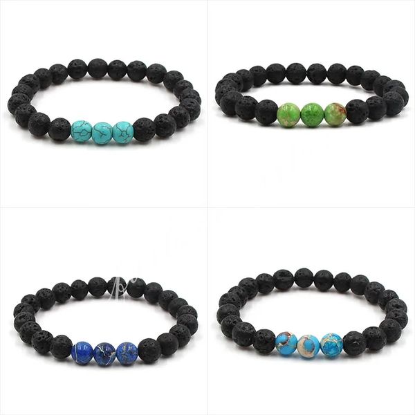 essential oil perfume diffuser 8mm black lava stone beads bracelet, Golden;silver