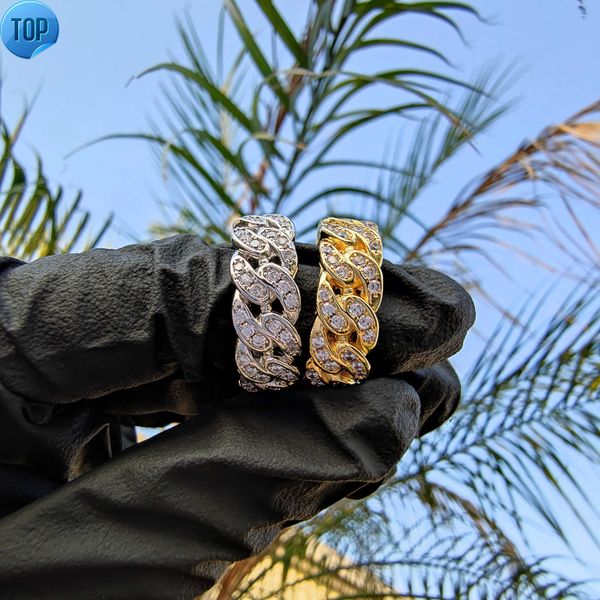 european and american hip hop zircon diamond ring 8mm cuban chain gold ring for women and men, Silver