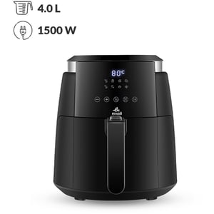 evvoli Air Fryer 4 Liter With Digital Control Panel Display, 8 Preset Programs Built-In Preheat Function 1500W - EVKA-AF4008D Black