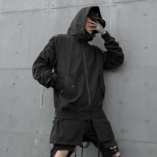 ewq / men's wear autumn and winter new jacket coat 2020 fashion hooded zipper patchwork black coat for male hip hop new 9y3196, Tan;black