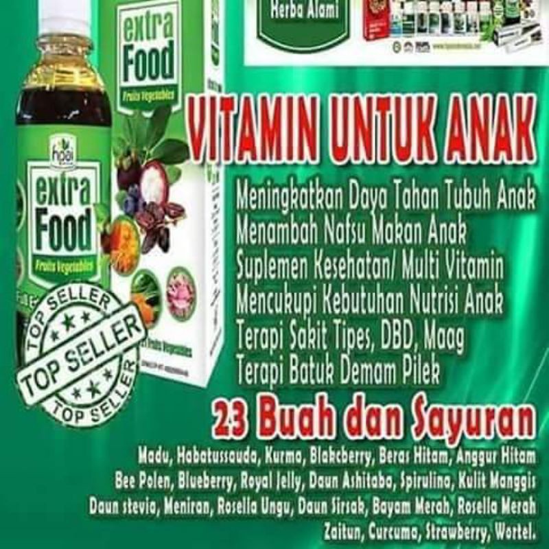 ==> EXTRAFOOD adalah Saripati dari 23 macam Buah & Sayur dlm 1 botol EXTRAFOOD