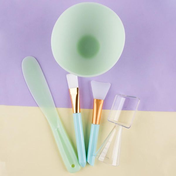 eyebrow tools & stencils 5pcs in 1 set diy beauty silicone mask bowl reusable makeup with handle for woman use(green)