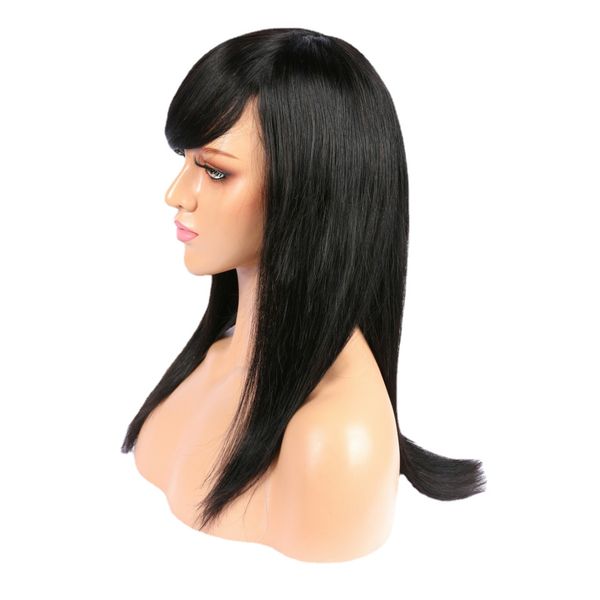 f anlimer 13x6 lace front brazilian human hair wigs with bangs silky straight with baby hair, Black