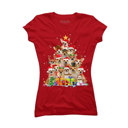 Christmas Pajama Chihuahua Tree Juniors Red Graphic Tee - Design By Humans M