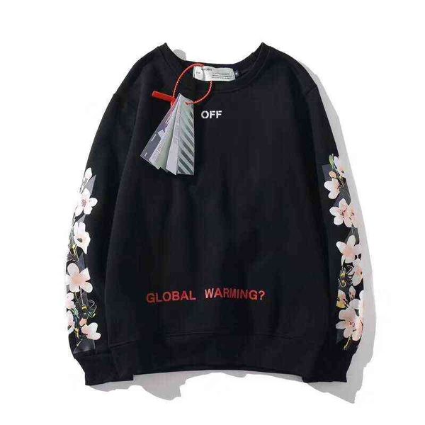factory online export trendy sweater plush off arrow blossom print round neck loose men's and women's fashion brand youth leisure, Black