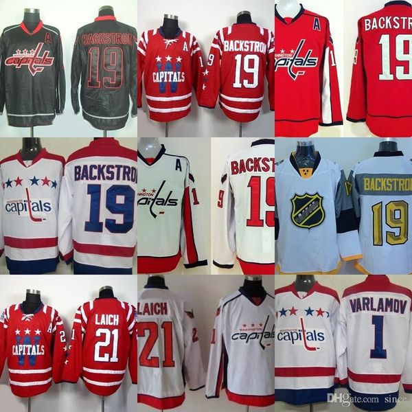 factory outlet men's washington capitals #1 varlamov #19 backstrom #21 laich black red white ice hockey jerseys ing