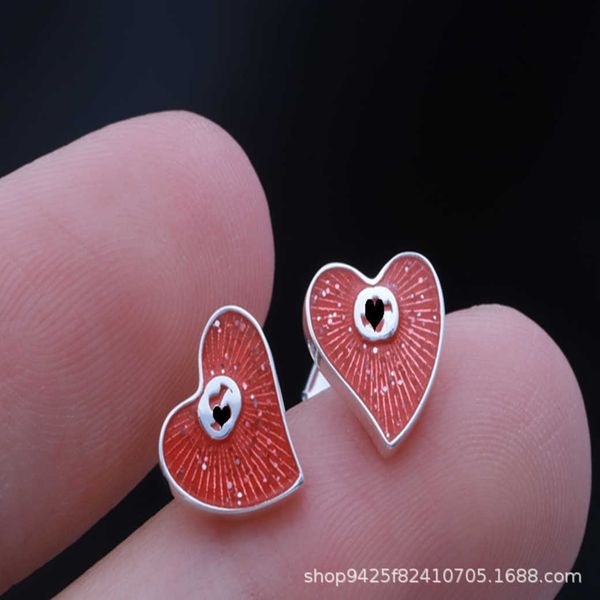 factory wholesale 2023 new luxury fashion jewelry for new silver three-dimensional interlocking enamel red heart earrings for women, Golden
