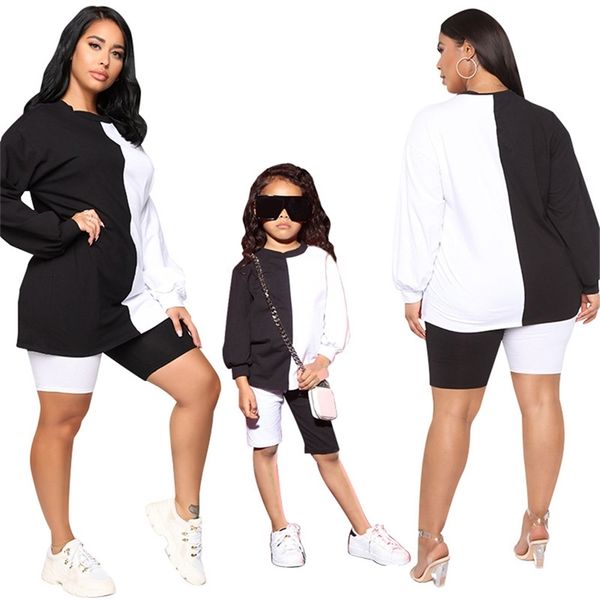 family matching outfits nashakaite 2pc horts family look mother and daughter clothes summer black and white contrast clothes mommy and me ou, Blue