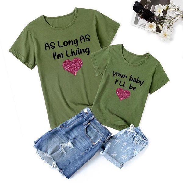 family matching outfits summer mommy and me t-shirt for mother daughter clothes short sleeve cotton tee, Blue
