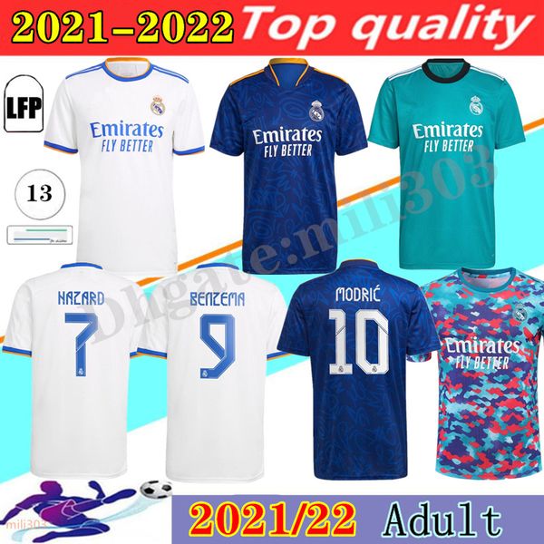 fan + player version 2021 2022 real madrid home away soccer jerseys 21 22 alaba hazard benzema asensio modric marcelo third camisetas de men, Black;yellow