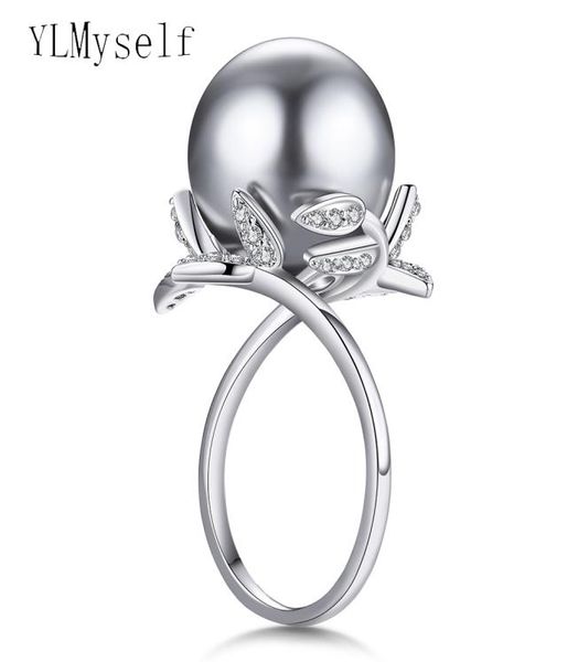 fantastic leaf ring with big grey pearl trendy white jewellery drop anel anillos aneis female jewelry rings7351095, Golden;silver
