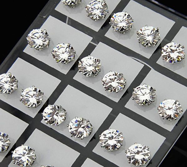 fashion 24pcs 8mm clear austria cubic zirconia stainless steel stud earrings for womens mens whole jewelry lots a6452344368, Golden;silver