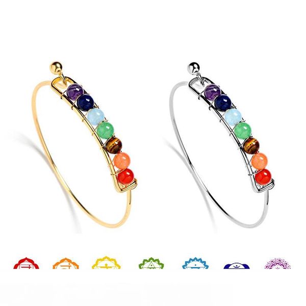 fashion 7 chakra wire bangle for women yoga natural stone beads charm bracelets reiki spiritual buddha 2019 personalized jewelry in bulk, Golden;silver