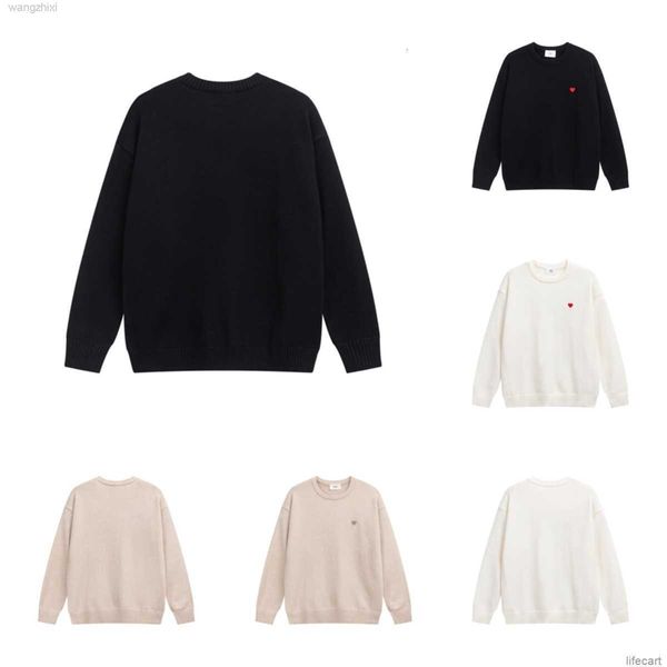 fashion amis paris love hoodies amies de coeur embroidery a heart pattern cotton sweater simple men's and women's long sleeves o9r, Black
