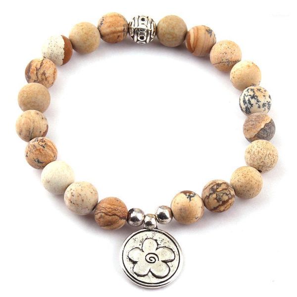 fashion beautiful 8mm natural stone wrist flower charm bracelet1, Golden;silver