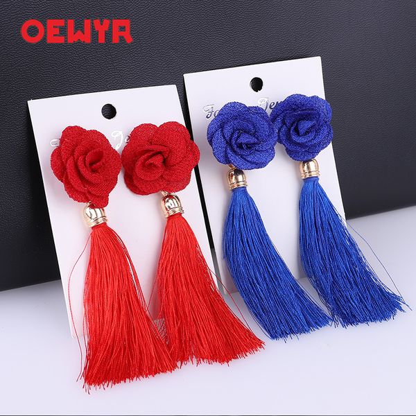 fashion bohemian tassel crystal long earrings flowers white red silk fabric drop dangle tassel earrings for women 2019 jewelry, Silver