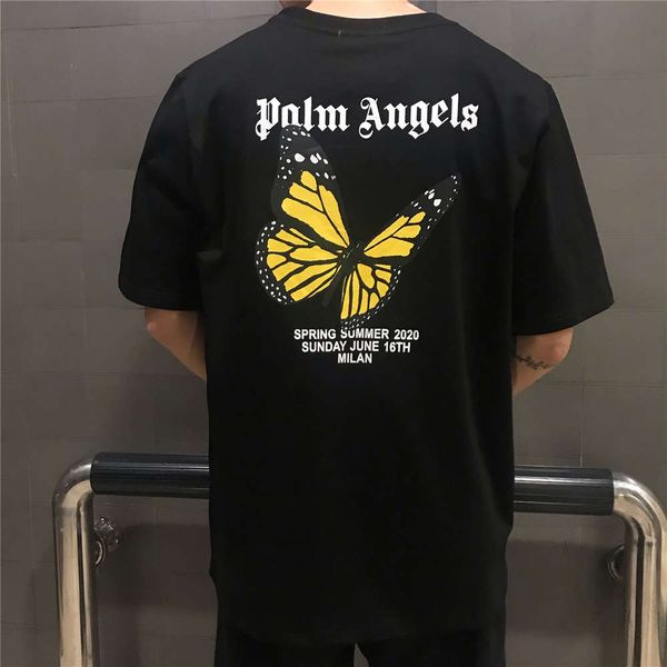 fashion brand back butterfly printing short sleeve net red lovers street personality t-shirt men and women bf long style y, White;black