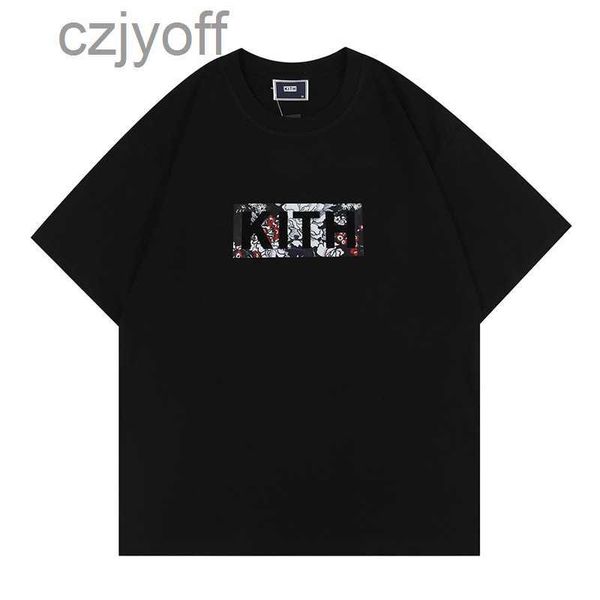 fashion brand kith floral classic box tee flower print t-shirt for men and women large short sleeve, White;black