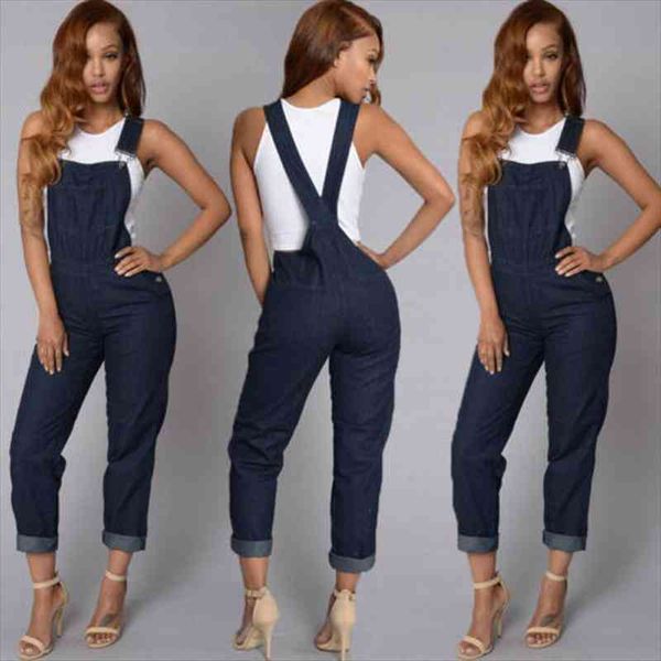 fashion casual suspender solid color womens jean backless wide strap buttons overalls fitting wild daily wear sling trousers, Blue